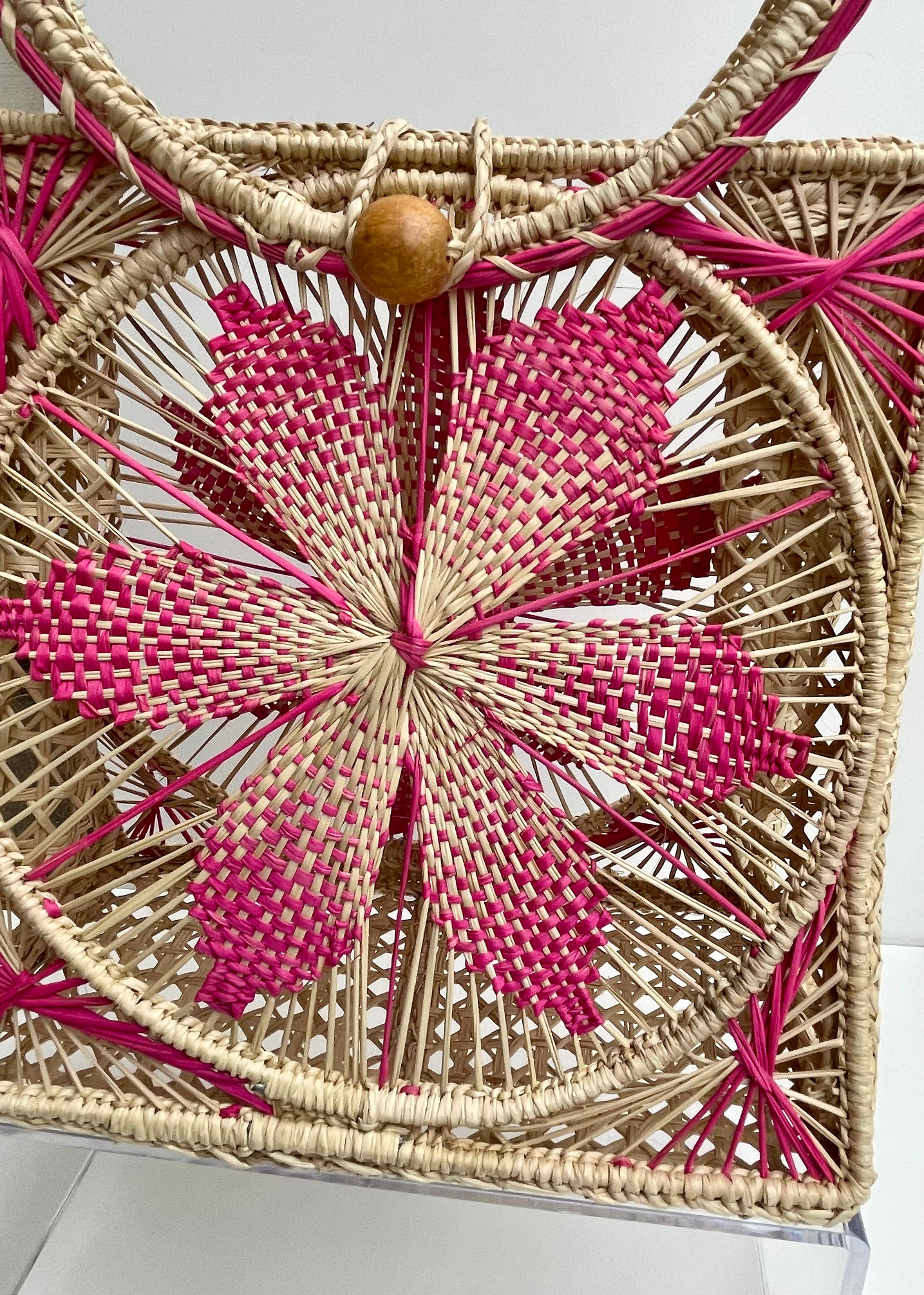 Iraca Palm Wrist Handbag (Dark Pink)